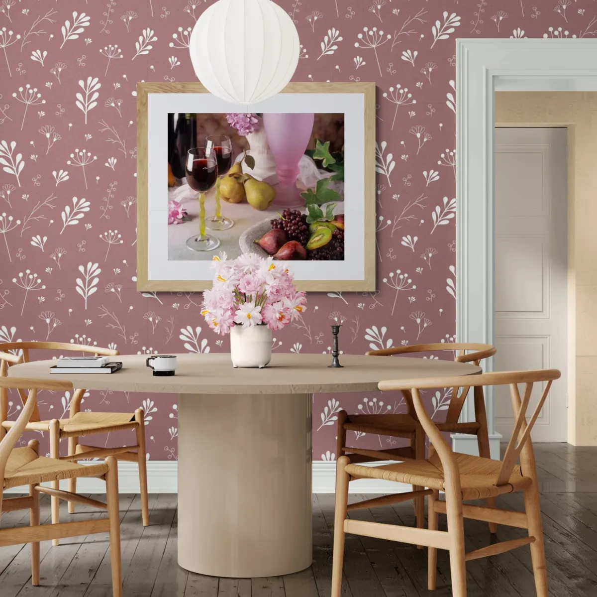 Fruit and wine on painted surface