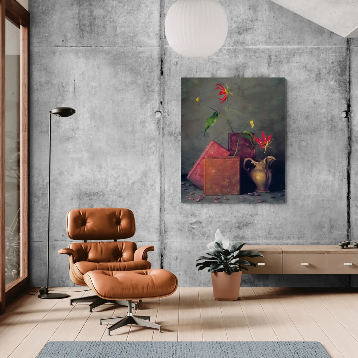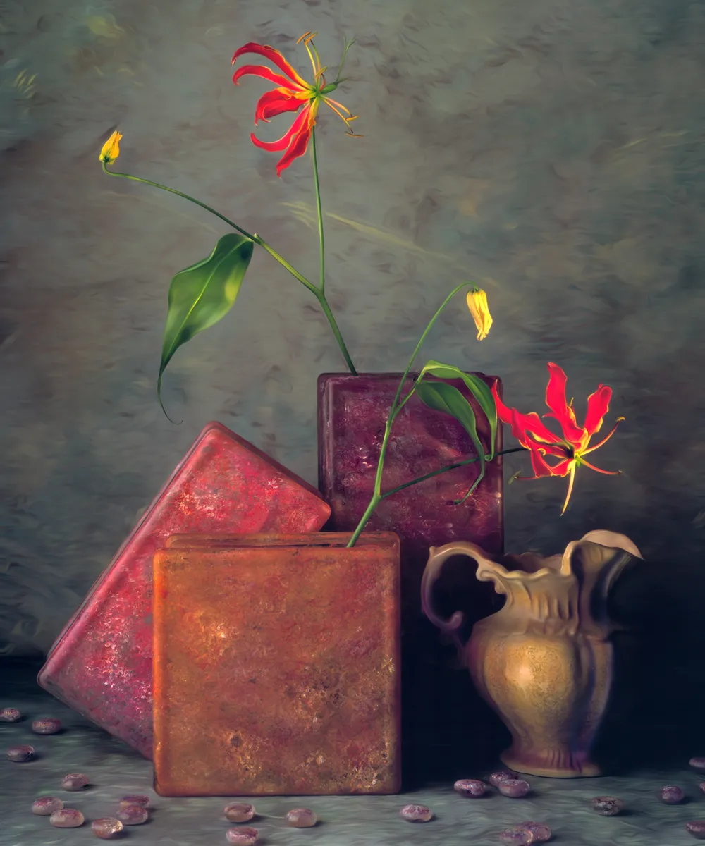 Photograph of painted vases on painted scene