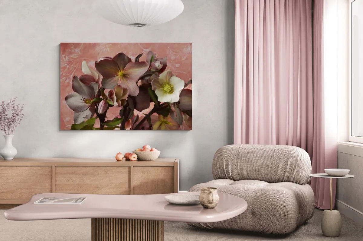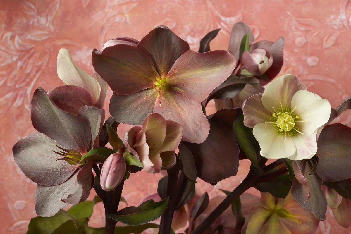 Hellebore flowers with textured background