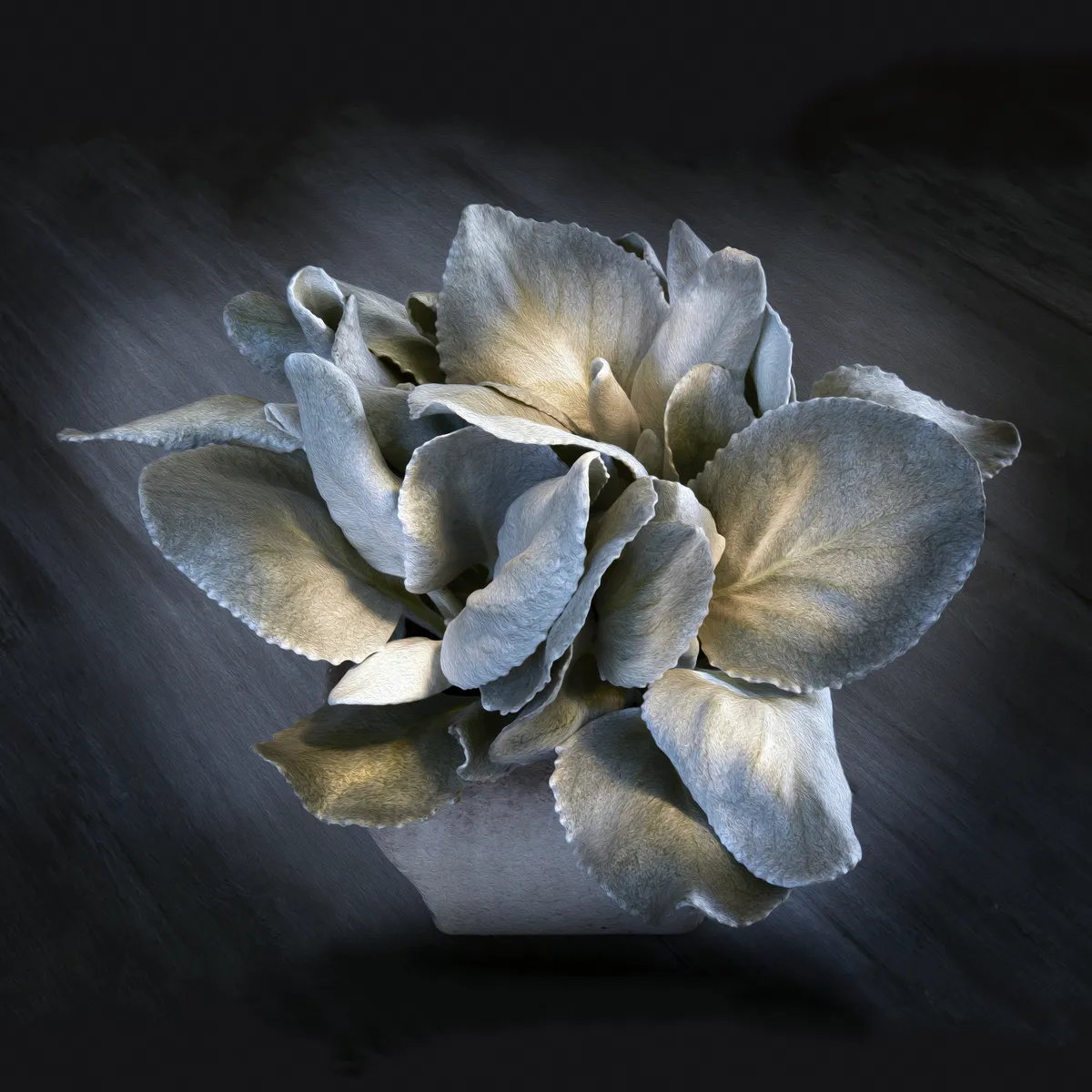 Silver sage plant with a dark background